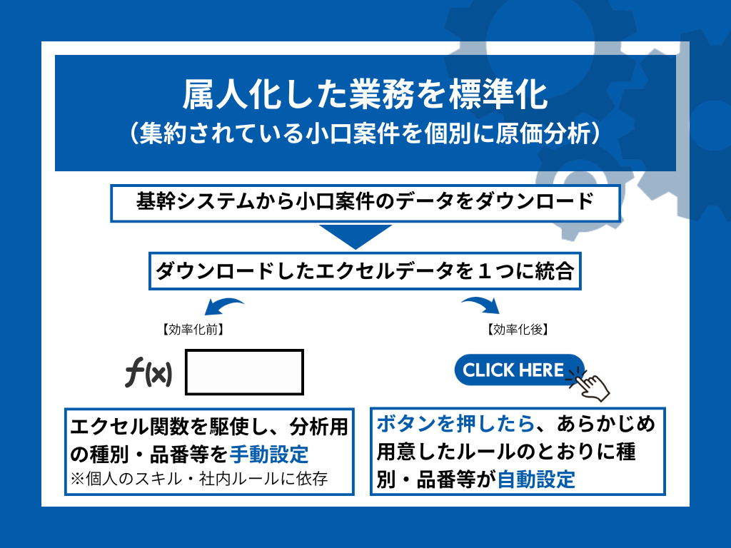 グループ各社の業務プロセス課題抽出と、ITシステムの改善・構築で業務効率向上に貢献します実績管理帳票作成の合理化